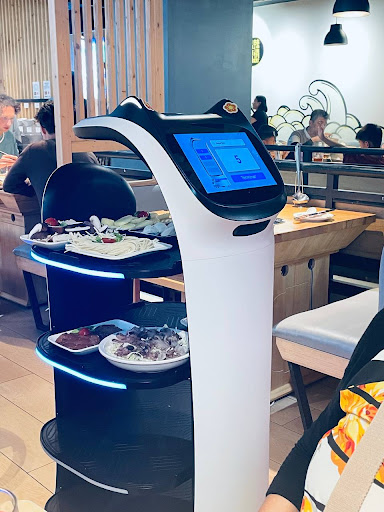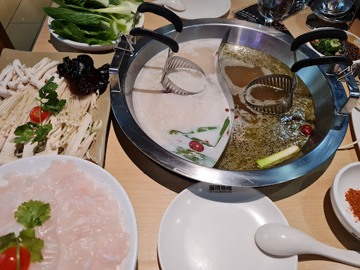 Really nice experience, it's both delicious and fun at the same time. The decor and aesthetics feel quite natural and harmonise whikst still being modern. You will feel comfortable there. Even when it got quite busy (and it does) they were never saturated. Tables are not too close together, and higher traffic areas are actually quite spacious in foresight. Ambience is really good. We had the the table for little over an 1.5h and it felt like half that time. Staff are attentive and speak English too. They put this massive tub in your table with the desired base and you choose the things you want to eat, it comes along on a robot (literally) and then you take your things and cook those things in the "pot" bubbling at your table. It really is quite an experience as everything arrives together and so you decide how well done you want your food and ihe order you want to eat it in.