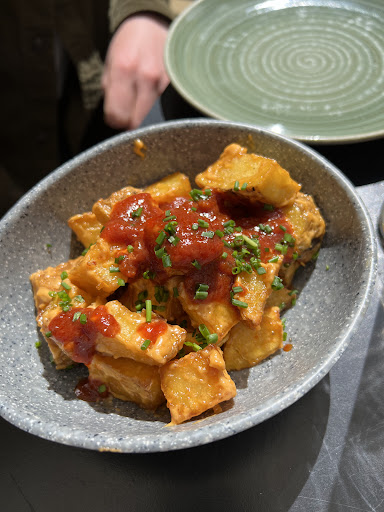 We have been here three times and it’s hit or miss. Last night we went with two friends and the service was poor. There was no one else there but we had to flag the waiter down to place an order. Although The food was quite good. The bravas were very good and I had their Caesar salad which was delicious. The issue is that everything we ordered had battered and fried items. Even the chicken in the salad had a breading and was fried. I would have preferred it grilled or sautéed for it to be less rich. We ordered the fish tapa and it was deep fried chunks of fish. The bravas were also fried. All delicious but we all preferred less fried food. The waiter came after our meal and asked one person if he wanted coffee, no one else, and was not friendly and didn’t once smile. Customer service goes a long way. Out of the three times we have eaten here twice was a bit off so we will likely chose another place next time.