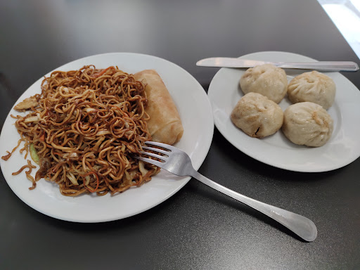 En si tienen una vitrina con distintas cosas y debes elegir 3 a tu elección; en mi caso cogí arroz frito, revuelto de huevo con tomate y un panecillo relleno de carne.
