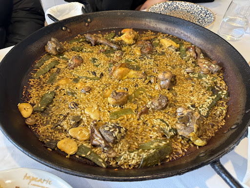 The bad experience started when we booked the place, when the restaurant warned us we needed to select only one paella for the whole table to order in advance. We can understand that the paella needs time to be prepared and thus require ordering in advance, but when we arrived to the restaurant, we still needed to wait 45 minutes for the paella to be served, so what was the point of ordering it in advance? Second problem is with the fact that you cannot select more than one choice of paella per table if your group is less than 8 people (which most parties are). We wanted to try at least 2 paellas / arroces between 4 people (to suit different tastebuds and restrictions), but that was not possible because of that.