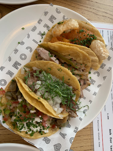 -the flavour of the taco was disappointing as well as the previous dish. Because the menu description was clearly mentioning potatos,chistorra,meat,green pepper and I'll come back to this pork cracklings Turn's that I just found that the taco was filled with a sort of potato pure with a flavour of something not close to meat mix with pepper and the other ingredients I mentioned before. People who genuinely cook will know what I'm talking about.