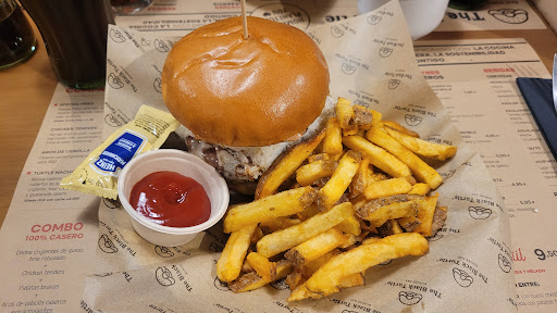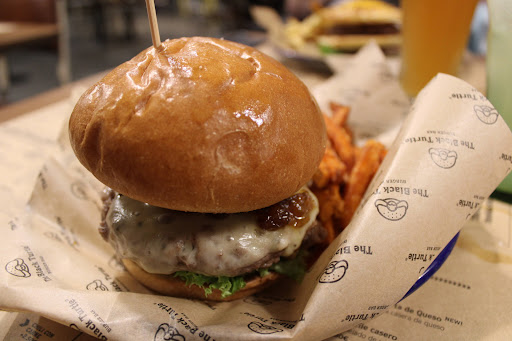 I have been to the black turtle before in other locations, it was a long time ago so I was very excited to go back when in Valencia. Unfortunately it was quite a let down. We sat waiting for 30 minutes without our order being taken. I had to go up to the waitress and ask her to take her order, she then said just a minute and walked off without returning. I then went back to my table to my husband to suggest leaving and a waiter came out, walked straight past us and our table, and went to take the order of another table who had only just arrived 5 minutes ago. They completely ignored our table. The lady at the other table actually said to the waiter excuse me but I think they were before us and they have been waiting for some time now. He then proceeded to take our order, without any apologies or acknowledgement of our long wait time and being ignored. When the food arrived it was... Okay. The chips were lovely, but the burger itself was quite dry. Even though it seemed there was plenty of sauce on, the sauce was only on one half and because of the pancakes, cheese, and the burger all being quite dry, it definitely needs more sauce throughout the burger and then it would be much nicer like I remembered (I think in the past it had sauce drizzled on top which made a big difference). I would give the place another chance next time I am in Valencia and maybe try a different burger, but the service needs a massive improvement because it was quite shocking. Even to pay my bill at the end I had to go and find someone and stand over them until I could pay the...