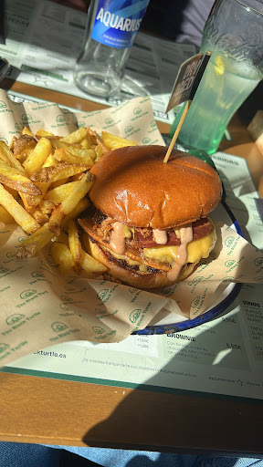 Read moreThis is a friendly burger joint in a great locale, but we decided to do Para llevar (take out) due to one member of the party not feeling well. We ordered online and could pick the time we wanted to retrieve our order— all very easy and efficient. You can even pick how you like the burger grilled (more pink or more well done) I was greeted immediately and had order in hand within less than a minute.