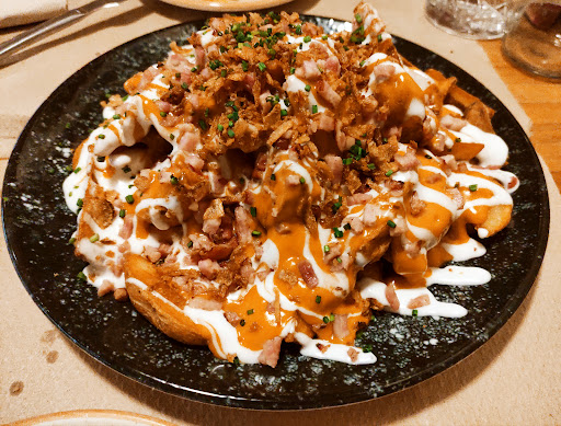Por contra, las "Bacon Cheese Fries Cheddar", aunque te ponen una cantidad muy generosa, no son las mejores ni dentro del TOP 5 que haya pedido por ahí. Es cierto que tiene mucho queso, mucho cebollino con un poco de salsa yogur (parece que es esa) pero no me acaba de llamar la atención, pareciera que le falta sabor y es extraño con tanto ingrediente que tiene, a veces más no es mejor.