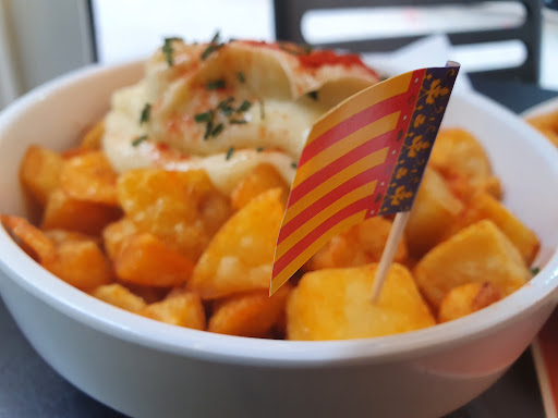 Read moreThe waitress was extremely kind, she helped me choose everything from the menu, she even brought the food to the table although this is a self service restuarant, the food was hot and nice, I extremely recommend the patatas bravas (5 euros), the portion is generous with a lot of sauce, and it could be shared between 3. We also ordered the combo luxe (7 euros): it includes 4 mozzarella sticks, 4 wings, chicken pops and fries and we couldn't finish it. The service was great, they put small valencian flags on the food and they are very attentive, taking the emptying plates as soon as...
