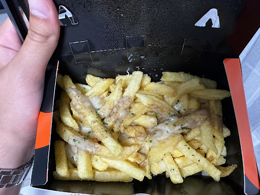 Tienes que pedir si o si por la web. Pagas antes de recibir el pedido y en ningún momento tienes información sobre la hora a la que vas a recibir el pedido. Eso es como mínimo, inadmisible. Una vez superado la odisea de si tardaran 10 min o 1 hora, llega el ver si llega caliente o frío, en nuestro caso, la temperatura llegó bien. Recibes el pedido y empieza el espectáculo, un packaging increible, que casi te da pena abrirlo. Pero una vez hechas las fotos, abrimos el pedido, 2 de patatas y 2 hamburguesas. Las patatas…. No quería ser tan duro pero solo tiene un nombre: ESTAFA 6€ por una ración de patatas congeladas, con una salsa de trufa escasa y que no dice nada. Patatas blandas, sin sabor, así como sus aderezos… las otras que pedimos de bacon, mas de lo mismo. Insulso y sin sabor. 12€ en 2 puñados de patatas que cuesta comerselo. Y pasamos a las hamburguesas. No sería justo decir que son malas, pero tampoco sería justo decir que son buenas. La palabra es mediocre o por debajo de la media. Le falta sabor a todo. Te dejan completamente indiferente.