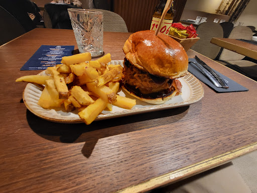 The bad: the service was very slow they were unable to give us one of the starters we ordered but still tried to charge us for it the other people dining there made the experience miserable. The place was full of shrieking drunken hen and stag parties, with one particularly lovely gentleman even throwing his beer everywhere, including over us and the people next to us. It even landed on the underside and side of the upper floor. The waiters were helplessly apologetic, rather than asking the offending party to leave. the bathrooms were a particular low point. The women's had no toilet paper or toilet seat, and the men's had faeces on the seat. I was unable to upload a photo of the disgusting state of the toilet, as Google said it violated their policies of