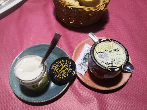 Read moreSimplemente espectacular. Abstenerse tiquismiquis que busquen un plato pintado con reconstrucciones o pijadas varias. Ahí vas a comer, en toda la extensión de la palabra. Una selección de productos de la tierra exquisitos y cuya elaboración roza lo perfecto. Un consejo: pidan vino tinto de crianza. Te traen platos de entrantes sin pedir: surtido de embutidos, langostinos, croquetas de jamón y un par de patés junto a una buena hogaza de pan. Luego te preguntan que si Caparrones o Paella. Por favor, elijan los Caparrones (una perola sin fondo de judías pintas pequeñas), que están deliciosos. Cuando estás casi lleno te preguntan que si chuletón, solomillo, secreto ibérico, bacalao a la riojana... Nosotros pedimos chuletón al punto y bacalao. La carne espectacular y el bacalao se deshacía en la boca. Postres y cafés o infusiones. Cuando pides la cuenta olvidan la libreta y directamente nos piden 50 euros. Imprescindible cuando pasas cerca de estos pueblos. Lástima...