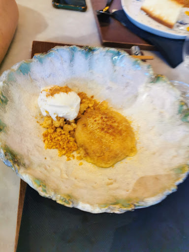 Comida original con un producto de 10. Primera visita a este local referente en Valladolid. En este caso pedimos varios entrantes para compartir (entre 4) y un principal por cabeza. Pese a que nos comentaron que era demasiada comida, en nuestro caso fue la cantidad idónea. Brocheta de brócoli y niguiri de huevo de codorniz con trufa, dos clásicos y para mi gusto obligatorios. Muy buenos. Huevos rotos japoneses, con atún rojo de gran calidad y en buena cantidad. Croquetas, buenas pero sin destacar nada en concreto, al igual que otro de sus clásicos, las patatas kimchie. Igualmente buenas, pero sin ser espectaculares como muchos de los otros platos que probamos. Además en este caso hubo un pequeño error y nos las trajeron con los principales alegando que acompañaban a uno de ellos cuando en realidad es una ración más que se cobra a parte tal y como habíamos pedido. Obligatoria también su famosa hamburguesa. Carne excepcional, pan brioche y un sabor increíble. (Es mini) Por último como principales, 2 de sus clásicos de carne y 2 pescados. Los 4, pese a que me repita, excepcionales y con una calidad tremenda. Presa a la parrilla, se deshace en la boca, suave y en su punto. Costilla teriyaki cocinada a baja temperatura. Melosa, más de los mismo. Se nota la calidad de la carne de este local En cuanto a los pescados, 2 fuera de carta, en este caso tradito de pez limón y sashimi. Los 2 muy buenos, pero la ración es muy escasa. Eso sí, elaboración de 10. En los postres, luces y sombras. La tarta de queso muy buena, cremosa y en su punto. La torrija, en nuestro caso no apasionó. El helado estaba arenoso fruto de la cantidad de hielo, quizás sea consecuencia del tiempo que llevaba hecho y no siempre sea así. Volveremos para comprobarlo :) La atención fue agradable y pese a ir a última hora a comer, no sentimos la presión de tener que comer rápido para irnos. Le quito una estrella por los pequeños detalles pequeños "fallos" y porque es cierto que en nuestro caso nos ha costado animarnos a ir por no tener carta. Entendemos que el trabajar con un producto de temporada hace que sea difícil, pero al comensal se le hace imposible recordar la cantidad de platos que te ofrecen de forma rápida. Por no hablar de que no sabes lo que te van a cobrar por cada plato salvo que lo preguntes... En cuanto al precio, es cierto que es un sitio caro, pero no mucho más que otros y es importante tener presente la calidad del producto con el que se trabaja y la indudable mano del chef para tratarlos y no maltratarlos. Volveremos sin duda a...