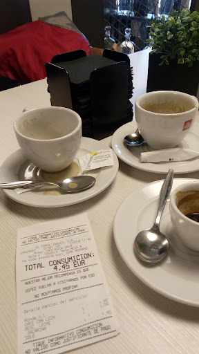 Read moreUna estrella es demasiado! El camarero de traje y gafas es lamentable! Da vueltas como una peonza por toda la sala hablando solo y quejándose por todo. A un matrimonio les tuvo 5 minutos al lado de la mesa y les repitió por 3 veces que no se podían sentar porque estaba sucia, en vez de limpiarla volvía a pasar y lo repetía. Al final la limpió pero rechistando.Pedimos 3 sándwich y esperamos 20 minutos, observé como todos los clientes que habían entrado después de nosotros recibían su comida. Cuando pregunté por nuestros platos me contestó que a la compañera se le había caído algo del sándwich al suelo. Cuando nos trajeron los platos las patatas fritas estaban frías y el huevo del sándwich igual. En mi plato las patatas se podían contar, no habría más de 10. Al lado del ordenador tenían una papelera donde tiraban restos de las mesas, entre la pared y la papelera estaba lleno de papeles y daba un aspecto...