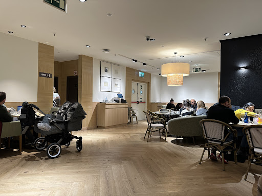 El ambiente de la cafetería es otro punto fuerte. Decoración moderna pero acogedora, con una iluminación que invita a relajarse. Ya sea para una pausa rápida durante las compras o para disfrutar de una charla tranquila con amigos, el entorno es ideal.