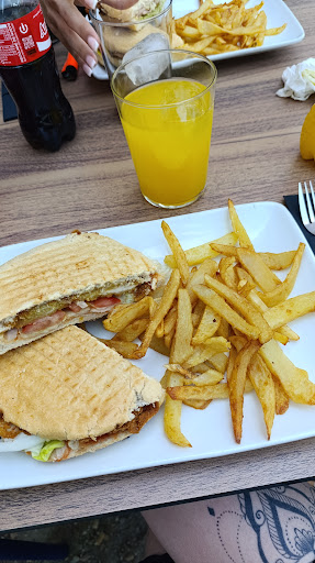 El “camarero” de gafas con tatuajes altito, sin muchas ganas de trabajar. Terraza vacía y tardó 15 minutos en atendernos… El día que fui no tenían ni café, no me había pasado en mi vida. El desayuno que pedí venía con supuesto zumo de naranja y era zumo de naranja rebajado con agua, lo peor que he probado en un bar en mi vida. El sándwich que pedí venía con un pelo dentro (adjunto foto), asqueroso. Cuando fui estaba en muletas y estaba con unas cuantas personas más. Quisimos hacer cuenta separada y no me dejó pagar con tarjeta desde fuera, que tenía que entrar dentro para eso. ¿En qué cabeza cabe? ¿No me ves con muletas? Sin más… No tenía el datáfono conectado a ningún cable. Simplemente le daba pereza ir moviéndose alrededor de 6 sillas para ir cobrando a cada uno supongo. El bar está pegado al Hotel Polotel y obviamente si te levantas por la mañana y quieres desayunar algo vas a ir ahí, pero recomiendo la verdad ir a otro sitio,...