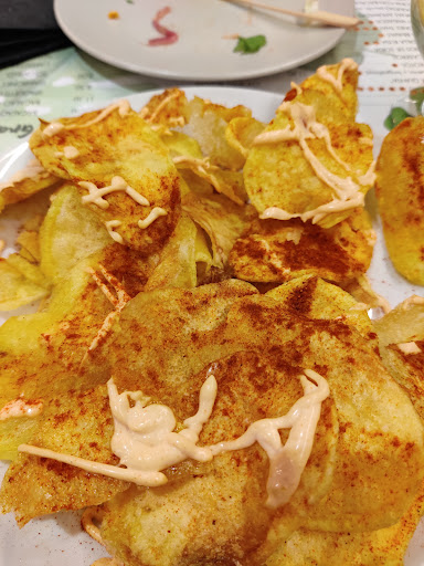 Las rabas aceitosas y gomosas. Canelon de lechazo que podría ser cualquier cosa...ingente bechamel...con un queso que tapaba todos los sabores. Aún así..tres trozos de algo que no sabía a nada. Y con el hijo a cuestas.... La copas cada una de un padre. El pan de un bocado y poco hecho y caro..muy caro.... Luego el añadir a todo 40 céntimos por estar a dos metros del local... La pluma ibérica cortada de una forma extraña...pero correcta. Experiencia de 3. Sin mas. En general.muy caro calidad, servicio, presentación y precio. Teniendo en cuenta que al lado hay muchos de mejor variedad y calidad a un...