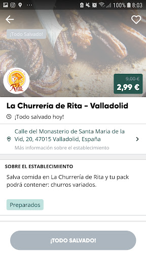 Si vais por el Too Good to Go, ahorraros el viaje. El contenido del pack ni de coña es lo que prometen, ni vienen solo churros como dicen, ni tiene un valor de 9 euros ni de broma. Encima, me han puesto una Horchata que posiblemente, o está en mal estado, o es que es la peor Horchata de todo el mundo, no lo sé, mi pareja lleva con una diarrea de las más intensas esta noche. Me he sentido muy estafada ya que en la descripción ponía que sólo podían venir variedad de churros en el pack y es de lo que menos me han puesto. 7 mini churros. Deberíais cambiar la descripción en el Too Good to Go porque no hay derecho. Encima ya no es solo eso, un mini pincho de tortilla, 7 churros pequeños, medio bote de chocolate y medio de horchata que posiblemente esté mala de verdad, tiene un valor original de 9 euros? En fin... Para ir como cliente normal estará bien ir a este sitio, pagarás por lo que recibes, pero si vas por el Too Good to Go, no lo hagáis. Es uno de esos locales que les dan mala reputación a la página incumpliendo lo que prometen y a la iniciativa de salvar comida. Es una pena porque no sólo los consumidores de Too Good to Go son los perjudicados, sino también las empresas que sí cumplen con la información de los contenidos de su pack, su valor original y la calidad del producto. Os pongo 2 estrellas porque la chica que teníais...