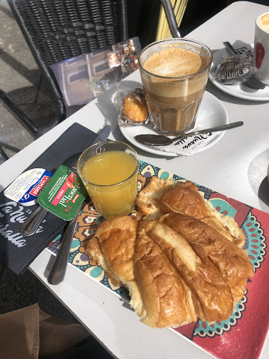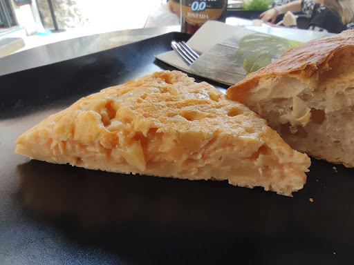 Fui a desayunar y pedí el pincho de tortilla ,tienen un par de variedades de tortilla , yo pedí la clásica de patata, un pincho de tamaño entre normal y pequeño, servido a temperatura ambiente , patata cortada en trozos irregulares , bien frita , sin cebolla , bastante jugosa aunque no liquida , buen sabor y punto de sal. Para mi gusto le falta patata. Buen pan.