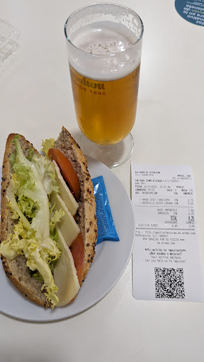 Read moreTras pedir tres opciones de bocadillos de la carta que no rondaran los 10€ y que finalmente no tenían ("tengo lo que hay en la vitrina"), opto por el mollete de tortilla a 5'50€. "¿Con jamón y pimiento?" me pregunta la camarera (es el único de la vitrina y el único mollete de tortilla de la carta). Le pido la cuenta: más de 9€ el mollete. Le digo que eso no es lo que pone en la carta. "¿No lo quieres entonces?" Opto entonces por el bocadillo vegetal con queso. Como pueden observar, este opíparo bocadillo de tres lonchazas de cuña de queso, dos pedazo de rodajas de tomate y un puñado de escarola, cuesta la friolera de 5'50€. Lo de la caña me da vergüenza ponerlo.