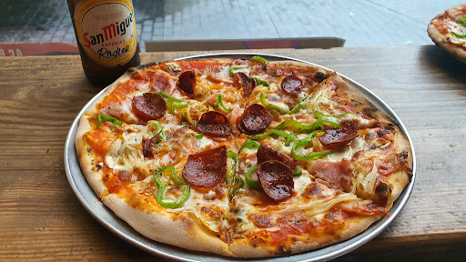 Tienen un amplio repertorio de pizzas con la masa fina (estilo romana). Son ricas, equilibradas de sabores y de ingredientes. El toque de distinción lo logran con la cocción al horno de leña. Todo el proceso de preparación, los ingredientes y el cocinado son visibles.