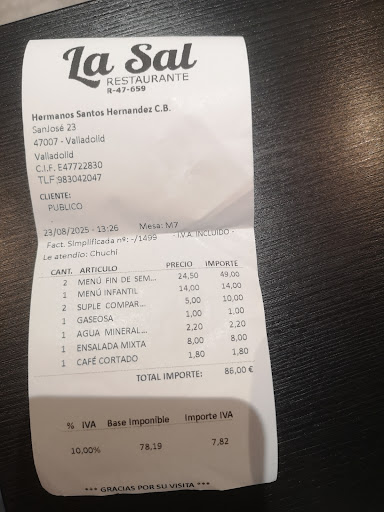 Ojito con este restaurante, comida buena pero.. Íbamos 2 adultos con 3 niños(edades 1año,3 años y 5 años) , los niños entre los 3 se comen un menú infantil porque son pequeños, pues pedimos 2 menús de adulto y 1 menú infantil, ya directamente nos comenta que por solo pedir 1 menú infantil y comer los 3 niños nos va a cobrar suplemento, en la foto se aprecia 10€ de suplemento (5 por cada niño), de primero para los niños croquetas con calamares, pues ponen 1 croqueta y unas patas de calamar (el calamar tipo pelota de goma), el segundo a estado mejor (escalope de ternera). Respecto a los 2 menús nuestros por la parte de comida bien, tampoco abundante, pero la bebida pedimos agua para un menú y vino de la casa y gaseosa para el otro menú, pues nos encontramos, (se aprecia en la foto) que nos cobran la botella de agua y la gaseosa, y el vino ha sobrado media botella, le comento que si me la puedo llevar o incluso el vino dentro de la botella de plástico de la gaseosa(ya que lo he pagado con el menú) pues me dice el camarero que no, que en el menú entra una copa de vino, ahora yo me hago la pregunta, si me llego a beber todo el vino, cuanto me cobra? No volveré a este sitio, soy gerente de una empresa y viajo por toda España, esta es la primera vez que se me presenta esto después de comer por toda España en muchos...