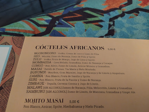 Precioso bar ambientado en la cultura africana con distintos motivos masais, sobre todo ( podeis ver en las fotos ) . Estan especializados en batidos de chocolate y demas sabores y son famosos en Valladolid por ello. El ambiente es tranquilo y amable. Tambien es verdad que es corriente que se vean partidos de fútbol en la pantalla gigante que tienen, en ese momento el ambiente es mas ruidoso, pero es normal. Se pueden ver los partidos del Valladolid, por supuesto pero tambien del resto de liga y champions, etc. El personal es amable y atento, hemos estado un par de veces y la atencion es correcta. Lo complicado es aparcar.. Mi recomendacion es que os acerqueis por la avnida de Salamanca y al girar hacia la subida a la derecha hacia la calle del bar a pocos metro hay una entrada a un parking gratuito y que no cierra de noche. Te pilla a 100 metros del bar y no estas pendiente de multas. Muy...