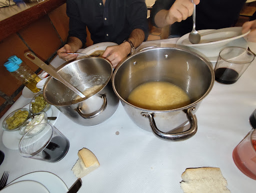 Perdona Julio pero NUNCA calificó porque soy un egoísta esta vez ha resultado acertada la calificación realizada sin quererlo. Menos mal. Pero ya que estamos...He comido en cientos de restaurantes y no los calificó porque los buenos ,como es tu caso , se acaban llenando y los malos .... pues que piquen otros y ademas no soy nadie para calificar a nadie. El cocido distinto, nunca lo había probado con dos sopas muy buenas las dos y distintas .Los gabrieles en su punto( no se si siempre usas los de esa procedencia ) y el tercer vuelco impecable aunque a algunos le gusta la gallina y la pueden echar en falta, los dos repollos en su punto asi como los rellenos. .del postre no opino porque no me gusta la tarta de queso , mis colegas me dijeron que buena. Todo ello magnífico también los chupitos de alta calidad generosamente ofrecidos por la "casa" y un cafe de pote razonable de lo que ya no se estila Pero lo mas importante es la simpatía tuya ...y de tu compañera.estoy harto de gente estirada que se creen la mamá de Superman . Una pena , lo digo desde mi egoísmo porque desde ahora se llenará y será difícil tener mesa. Pero cabeza. No morir de éxito. El precio imbatible. Otra pena porque sin duda lo debes de aumentar. Pondré una...