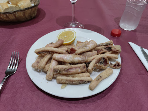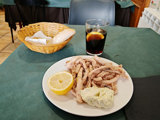 La comida genial en términos de calidad precio, aunque demasiado aceite a mi gusto en los calamares y el pan. La pizza espectacular, si la mozzarella no pelea por su vida, no es una buena pizza. El tamaño de esta ronda los 30cm de diámetro y está consistemente cargada. De postre una tarta de queso como marca la tradición que se lleva un sólido 8,5.