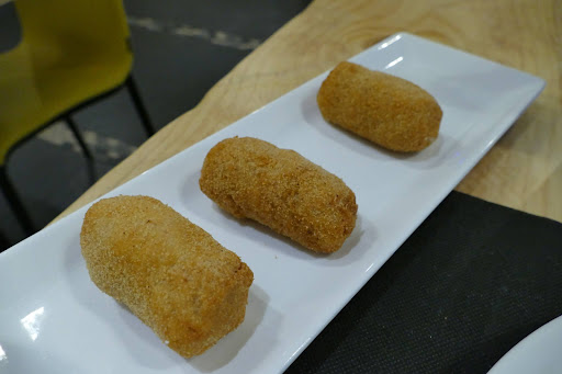 – Media ración de croquetas de jamón : No es italiano pero me apetecía probarlas , 3 croquetas de buen tamaño , bechamel cremosa , jamón picado muy fino , buen rebozado. No estaban mal.