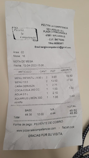 Read moreQuiero dejar constancia de la mala experiencia que hemos tenido en este local. Éramos 14 personas para comer el lunes 25 de julio. Que conste que el local estaba vacío y llegamos a las 15.00 h y lo primero que hicimos fue preguntar si la cocina estaba abierta. Nos prepararon la mesa y nos pusieron la bebida mientras elegíamos de la carta. En el código QR no aparecían los precios en las bebidas. Nos extrañó pero continuamos. Resulta que en esta pizzería hay unas normas que ni entendemos ni compartimos. Pedimos menús infantiles para dos niños, de 10 y 12 años, y uno más para una persona mayor de 76 años que no come mucho.... La camarera nos dijo que los menús infantiles solo eran para menores de 12 años....y no nos dejó pedir el tercero.... ilógico ya que si alguno de los niños se quiere comer dos menús infantiles, no puede?.... aún así continuamos.... pedimos platos y menús para mayores y tampoco se puede compartir.... otro inconveniente más....empezamos a enfadarnos porque todo eran problemas... Conseguimos hacer la comanda y la sorpresa mayor fue que a los 5 minutos viene supuestamente la encargada del local y nos dice que los menús infantiles solo son para menores de 10 años... que teníamos que cambiar. La camarera nos había dicho hasta 12 años pero en la carta ponía hasta 10 años. Le dijimos que lo anulara todo que nos marchábamos si no dejaba la comanda como estaba. Esta persona dijo que eran normas y tenía que cumplir así que prefirió anular una cuenta estimada en más de 250 euros por un menú infantil.... es totalmente incomprensible.... Los trabajadores no tienen culpa de nada y fueron en todo momento correctos, aquí el problema principal está en las normas de dicho local (así que esta reseña va dirigida a los dueños) y aparte que no es nada barato y lo veis por comentarios anteriores de otras personas que un simple aquarius valga 3.75 €.... No perdáis el tiempo en este sitio porque todo son inconvenientes..... Nos fuimos al GINO´S y...
