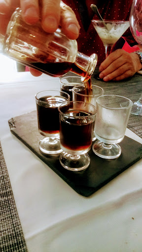 De postre me dieron a elegir entre tarta de manzana o tarta de queso. Elegí la tarta de queso. Un trozo de tarta de queso ligeramente rota acompañado de un coulis de arándanos. La tarta estaba templadita con buen sabor a queso y un toque dulce caramelizado, bastante cremosa. De las mejores que he comido últimamente.