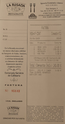 Read moreSencillamente vergonzoso, comida familiar , menu cerrado de Navidad con 2 meses de antelación, 50€ por persona servicio lento ,nata en 3 de 4 platos del menu, "ensaladilla" de "pulpo" con cebolla cruda? Con lechuga iceberg?Los gambones se han quedado en la pescaderia. Pescado malo , pasado y destrozado, en vez de patatas panadera ponen dos rodajas de manzana? UN TROZO DE COLA , Increible pero cierto. Carne de muy dudosa calidad,seca y camuflada con pimienta,pimiento del bote al plato. El postre no ha llegado para todos, tarta mala comprada y han improvisado, fatal. Menu infantil 25 euros , con agua (el resto aparte) fritanga, embutidos malos y "solomillo" como la suela de un zapato.Los niños sin postre ya es sacrilegio... Vino de Toro y agua , racionadapor supuesto (cerveza y refrescos no incluidos) Finalmente salió por 60 € por persona y te vas sin comer . 37 comensales eramos , hagan la cuenta.Adjunto imagen del menu y de los platos por que es una verdadera estafa. El pan...