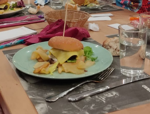 El sitio es bonito, la atención buena, la comida normal, sin pretensiones pero correcta. Donde fallan estrepitosamente es en los postres, algo que deberían cuidar ya que es un plato más que entra en su menu del día y por tanto deberían mimar como al resto de platos. De lo que ofrece el menú del día (éramos 7 y pedimos cada uno cosas diferentes), recomiendo el risotto y el pisto con huevo estrellado y bacon. Los burritos de setas no los pediría de nuevo. Setas de bote del Mercadona, tortilla de burrito del Mercadona... En casa van a quedar mejor. Los segundos resultones. Los pescados bien y la hamburguesa rica.. El desastre, como he dicho antes, viene en los postres. Una forma terrible de cerrar un menú que podría ser resultón. Milhojas con salsa de cacao y miel. Traducido: el hojaldre con el agujerito en el medio bañado en miel que venden en Mercadona y la salsa de cacao, el chocolate de tetarabrik. La tarta de galletas con nata, pues otra tarta que juraría también es del Mercadona, está vez acompañada de nata de spray. Donde acertamos fue en el helado, que sabíamos sería industrial y al menos no nos decepcionó porque sabíamos lo que sería. Espero que puedan mejorar la calidad de sus postres porque la cara de los comensales, había varias mesas como la nuestra, era todo un poema...