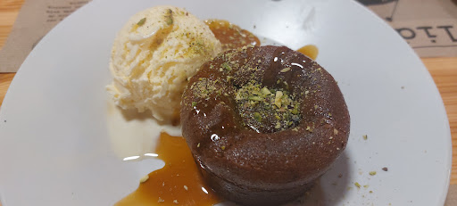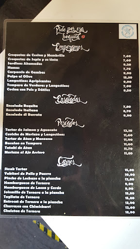La carta es todo un espectáculo, ya que han logrado crear fusión de sabores en platos originales. Cuando echamos un vistazo a ella no sabíamos qué pedir, pues se nos hacía la "boca agua" (en su página web podréis encontrar fotos de cada plato). De entrante, nosotros pedimos unas croquetas de cecina y membrillo (de las mejores que hemos comido: la masa buenísima, jugosa, la cobertura de la croqueta, crujiente, y si ya lo fusionas con los daditos de membrillo... Crea una explosión en boca con un toque dulzor muy bueno); de segundos, pedimos un entrecot y un chuletón de ternera (los pedimos al punto y clavaron el punto de cocción; jugoso, de sabor buenísimo) acompañados de patatas laminadas. Cual fue nuestra sorpresa que también tenían postre...Un coulant de chocolate, con bola de vainilla, todo ello bañado en caramelo con cobertura de pistacho, de los mejores postres que hemos probado!! Mencionar que me ofrecieron pan de hogaza estilo rústico y calentito (sin gluten).