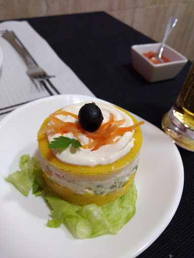 When entered we were offered drinks and it was served with complementary tostados which is deep fried corn. Those were delicious and crunchy. As primer plato I had the Causa limeña. This is a typical Peruvian layered potato dish. It tasted delicious. And it looked as good as it tasted. And the price was only €5. A great choice. For the segundo plato we choose the ceviche. It comes in two sizes and the large size which is only €3 more than the small size serves two easily. €16 vs €13 The taste was heavenly. Everything tasted super fresh. The two dishes were accompanied with two dipping sauces. One spicy and the other more creamy. Both excellent. If I would stay here longer I would definitely return...