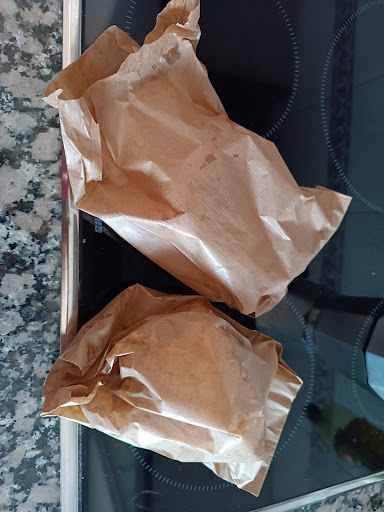 Acudí ayer domingo a este lugar a comprar el pan. Al entrar, recordé que había estado una tarde merendando y me había gustado su tarta de queso, asi que pregunté si la tenían para llevar, y ante su respuesta afirmativa pedí una porción de queso y otra de zanahoria para probarla. Mi sorpresa fué mayuscula cuando me plantan encima del mostrador las 2 porciones en 2 bandejitas de cartón metidas directamente en una bolsa de papel cada una (adjunto fotos porque si no lo veo no lo creo). Me quedé sorprendidísima y le dije a la dependienta que aquello era una autentica cutrez. Como narices se va a llevar una persona eso así si ya solo de meterlo en la bolsa de papel se había desparramado toda la cobertura de la tarta, si no lo puedes apilar, si tienes que llevar también el pan, si se va a caer de la bolsa de papel!! Le pedí que por lo menos me cerrara la bolsa con un poco de celo y claramente avergonzada me contestó que se le acababa de terminar, y lo intentó medio apañar haciendole un burruñito a la boca de la bolsa. Sinceramente no me dí la vuelta y me marché dejandole aquello allí porque la pobre empleada no tiene la culpa, pero escribo esto bastante indignada ya que pagué 10,5€ por 2 porciones de tarta (el precio del pan lo dejo aparte) y la que finalmente pasé la mayor vergüenza fuí yo sacando semejante espertpento a la mesa en casa a la hora del café. Francamente creo que hoy en día, en el que comprar/pedir comida para llevar está a la orden del día, hay un sin fin de recipientes ya sea de plastico, de aluminio o de cartón para preparar comida para llevar y creo que por el precio que cobran bien los pueden conseguir. Y si no lo quieres preparar en condiciones, simplemente me dices que no, que solo es para consumo en el local y tan amigos todos, pero desde luego es inadmisible una...