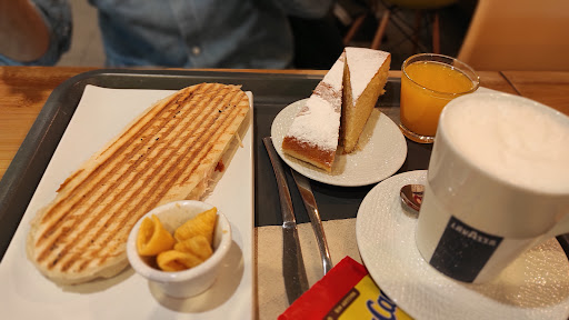 Read moreEl tema de mi experiencia lo dividiría en cosas buenas y cosas malas que tiene este local: Cosas buenas: el sitio está muy bien ubicado, el café que tomé estaba bastante bueno y la pastita que lo acompañaba se notaba que también era de buena calidad. Además fui atendido en poco tiempo. Cosas malas: cobrar 3'20 por un café en Valladolid me parece directamente un robo. Y las especialidades que ponen en los carteles de precios están a esos niveles. En una ciudad como Valladolid 2€, 2'5€, me parecerían unos precios relativamente caros pero lógicos para un sitio céntrico dentro de la ciudad. Por otra parte pedí un descafeinado de sobre en taza grande. Reconozco que la taza en la que lo pusieron era grande de narices, pero más de la mitad de la taza estaba ocupada por espuma. De hecho había entrado porque notaba un picor en la garganta que anunciaba un ataque de tos, y el ataque me dio antes de que pudiera llegar al café porque solo estaba tomando espuma. Al final pagué 3'2 por un café que en otro sitio no me habría cortado mucho más de 1'5. Conclusión: no es un sitio que recomendaría a menos que te sobre el dinero, y aún así hay sitios mejores como puede ser el mercado del trigo que desde luego no...