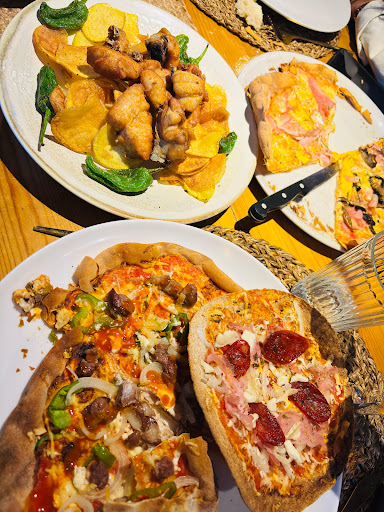 Todo empezó mal desde que llegamos. Tenía reservada mesa para 10 personas (1 para 6 adultos + 1 trona y una para 4 niños). De primeras pretendían que nos sentáramos en una mesa (para &) de la de los niños se habían olvidado por completo, y, además no hacían mas que caer hojas y polen en la mesa y platos, se lo comento a la persona que nos atendió (un señor) y su respuesta fue: "estas en la naturaleza, que pretendes", perdón???? por que tengo que comer en una mesa que me van a caer cosas en la comida???? (había mas mesas libres al lado que no tenían ese problema), pero según el estaban reservadas, la mía también y faltaba sitio para 4! Nos pasan a la parte de atrás, un calor infernal y nuestra mesa sigue sin aparecer, y nos ponen en una mesa (literalmente embutidos) y conseguimos que nos monten otra para los niños, con una solana importante, las lonas que tienen a modo de toldo es inútil y media mesa esta a la solana, nos dicen que nos van a traer una sombrilla y la trona que habíamos solicitado cuando reserve y tardan otra media hora o mas en facilitárnoslo (ya eran las 3, llevábamos allí casi 1 hora); pedimos acto seguido que nos tomen nota de la comida (4 ensaladas,3 pizzas, 1 chuletillas y 1 pincho de pollo) las ensaladas y las pizzas tardaron 1 hora en venir, pero los que habíamos pedido las chuletillas y el pincho de pollo no empezamos a comer hasta las 16:30 horas, increible.... faltaban el pincho de pollo y las chuletillas, preguntamos por ello y nos dice la camarera que es que eso tarda mucho en hacerse porque es al carbón, pero, 1 hora y media???????? Lamentable!!!! Llega la hora de la cuenta, revisamos por supuesto, porque con tanto jaleo estaría mal seguro, y, así fue, nos cobraban 6 postres de mas!!! la disculpa es que la maquina estaba mal.... En cuanto al precio, bastante caro la verdad, y mas teniendo en cuenta el mal servicio que habíamos tenido.... creo que deberían atender a la gente que pueden abarcar..... los comentarios de la gente que teniamos al lado era el mismo.... fue desesperante. Se salvo que la comida estaba buena!!! pero vamos, que no vuelvo...