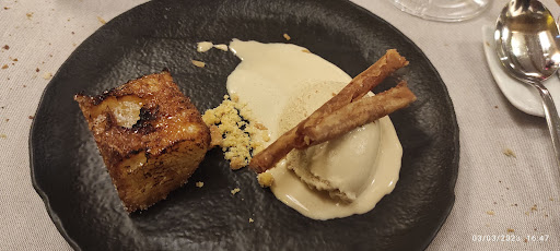 Hemos pedido como entrantes, vieira con crema castellana. Estaba muy buena, no entendí lo de castellana ya que era una crema de marisco ( lo mismo lo entendí mal) con mucho sabor. Muy buena. Y muy bien presentada. El segundo entrante, un carpaccio de picaña, sencillamente espectacular, hay que probarlo. Los segundos han sido Pluma Ibérica, menier de avellanas y salsifis y Lomo ciervo con foie, jugo de cerezas y queso Pata Mulo Ambos buena presentación, calidad/sabor. No quiero dejar de mencionar el café, estaba bastante bien. Parece una tontería pero una comida como la de hoy, merecía un buen café, y este era bueno.