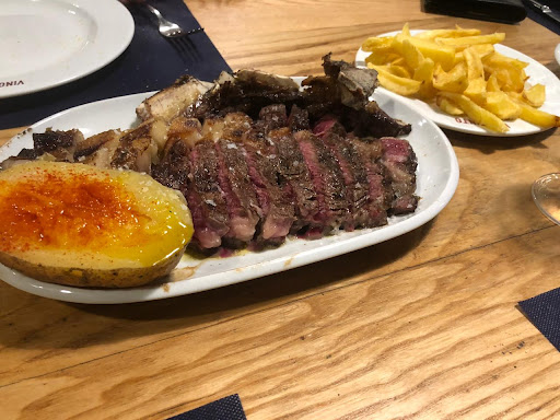 Read moreUn restaurante ubicado en pleno centro de Valladolid a escasos metros de la plaza Mayor. El local está bien decorado con un ambiente muy agradable en el que predomina la madera en las paredes y con bancos de madera corridos, lo que le da a la sala un aspecto acogedor. La comida es muy buena. Una cocina con una cuidada presentación y platos bien elaborados con materias primas de calidad y cercanía. Tienen una amplia carta con entrantes y ensaladas, aunque en lo que más destaca es en las carnes a la brasa de leña. El chuletón es excelente, una carne de calidad bien hecha y en su punto, tal y como la pedimos. Las verduras a la parrilla y la tortilla de bacalao están buenísimas. Los platos son generosos y en buena cantidad, así que no te quedas con hambre. Tienen una buena carta de vinos con algunos caldos de calidad a precios razonables. El servicio es correcto, la atención del personal es buena, son atentos y en la cocina son muy rápidos. Recomiendo reservar con antelación, ya que suele estar siempre lleno, especialmente los fines de semana. Un restaurante recomendable. Uno de los locales clásicos y de referencia en carnes a la brasa en Valladolid. Buena relación...