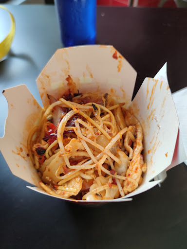 Yo fui a comer , pedí unos fideos de huevo con pollo , bambu y shitakes , cebolla roja y la salsa family que es la mas picante que tienen . El sabor de los fideos esta bastante bien , se nota el wok , la cantidad de ingredientes que ponen es bastante , de hecho recomendaría no meter mas de 3 ingredientes , casi no encontraba los fideos jeje. La salsa picaba si pero se podía comer sin problema , estaba bastante buena.