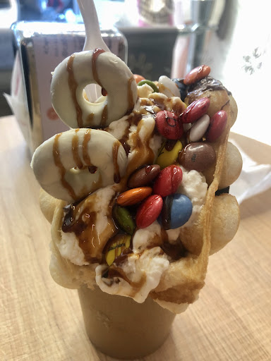 Allá voy con todo: Día 27 Julio: pedimos un Bubble wafle y dicen que tardan y que podemos pasar a la cafetería. Pasamos y pagamos allí lo que tomamos.