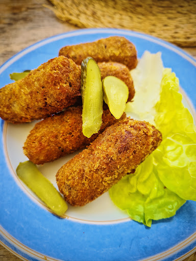 We had endive salad with Roquefort, too much dressing, too much of the strong cheese, too much jam & fruit - garnished with radish & colourful petals. We asked for fresh plates to distinguish the next dish. We tried croquettes and chicken empanadas, both again smothered in sweet puré and fruit chutney with cumin, again garnished with radish & colourful flower petals & icing sugar??? Why?! We tried the crispy duck, swimming in coconut cream, flavoured with juniper berries, a mix of fresh green herbs, more fruit, more flower petals; the pork belly, much the same; the lamb with couscous in a pool of miso paste, flower petals, sugar, sugar, salt, a smorgasbord of spices & herbs to what end?