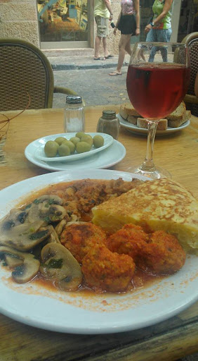 Great traditional place that's unpretentious and serve great food at great prices. The service was good and our little one was well looked after. We had the tapas dish with a few dishes we recognised and few we didn't but loved like the pork dish with peas and peppers (tasted like liver but not sure it was) and another that tasted like some kind of chopped up prawns with onions and peppers. We also had the more recognisable spanish omlette, and spanish meatballs. Our daughter had the spaghetti bolognese which was a generous portion and good tasting. We ended our meal with the local poatao cake and a glass of the horchata of almonds and coffee. Our daughter had an excellent ice cream. Service was very efficient, friendly and helpful. The outside seating are nice and in on the main walkway. The inside is uninspiring but we sat in because of the air conditioning and had no issues. The prices here are a lot cheaper than most other...