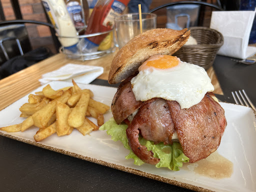 Cuando llegó el momento de los principales, la elección no fue fácil. En la carta había bastantes opciones, con bocadillos y platos combinados muy apetecibles, pero nos apetecía una hamburguesa. Y aunque había sugerencias interesantes, el servicio nos ofreció dos alternativas fuera de cara por la que nos decantamos: la hamburguesa de rabo de toro y la de gorrín, dos propuestas que ya nos llamaban la atención solo por lo inusual de su presentación en una cervecería.