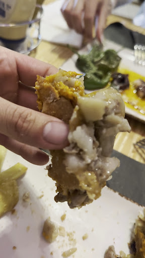 Pero la cervecería Enjoy no se queda solo en la cerveza. Su carta es una invitación a quedarte más rato, con opciones que van desde el picoteo clásico de pintxos, bravas o rabas hasta bocadillos, raciones, platos combinados y hamburguesas. Para nuestra visita fuimos directos a cenar, y aunque la carta ya prometía nos sorprendieron con dos sugerencias fuera de ella que no podíamos ignorar: hamburguesa de gorrín y de rabo de toro.