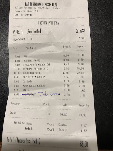 Read moreBueno lugar sin reformas ambiente de los 80 bastante dejado. En la sala donde estábamos tienen paquete de pañuelos en un tejado que se pueden quitar y dan sensación de dejadez. Fuimos 3 y Unas rabas, una ensalada mixta a compartir con 2 espárragos pero buenos (yo hubiera puesto uno por comensal)y trozos de tomate bueno pero enormes (no hace falta cojer el tomate de la huerta y ponerlo). Un ajuarriero bueno y dos merluzas estilo Orio buenas. De postre una cuaja, una infusión y un desfeinado. Todo ello con una botella de agua de cristal Los platos los lleva Spedi González no sabe esperar eso me resultó molesto. No íbamos a mala hora que eran las 14 :20 y el local al menos donde estábamos no estaba lleno. Comimos en buena compañía pero ciertos detalles ...