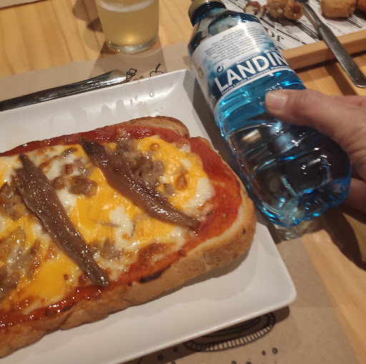 Read moreUn bar de aspecto moderno y ambiente agradable. Fuimos a tomar algo un sábado noche dos personas: pedimos dos pinchos de morcilla, queso de cabra, pimientos y jamón (1'40€ cada uno) y un zurito de radler y una Coca-Cola (3'20€ entre ambas bebidas). Bastante bien de precio, y el pincho, buenísimo. La atención del personal, pese a la gran cantidad de trabajo que tenían, fue estupenda. Disponen de bocadillos, pizzas y hamburguesas para llevar, aunque no probé nada más por ahora. Lugar muy recomendado,...