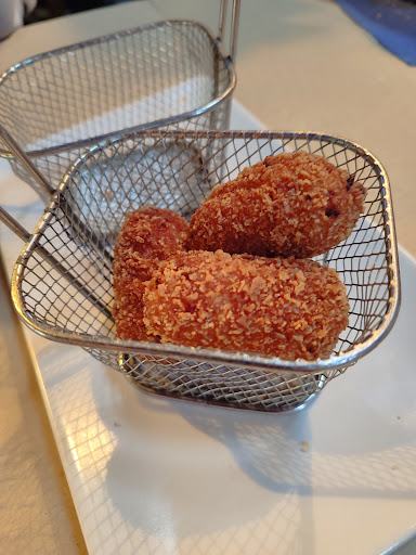 Read moreMi experiencia no fue satisfactoria, pongo 2 estrellas porque la comida estaba rica, y la camarera fue muy amable. Llamo média hora antes para reservar, ya que estamos en verano. En un principio me atendieron los dos señores que supongo que serán los dueños, parece mentira que trabajen cara al público, porque la amabilidad brilla por su ausencia. Aún teniendo reserva me sientan en la zona de bar, no lo entiendo, tenían sitios libres en el comedor de arriba y en la terraza, llamé para reservar...me ponen un plato y ahi me quedo esperando. Pasan 15-20 min y despues de llamar la atención por fin me atiende la camarera. Muy amable, por fin me saca la carta. La carta poco específica, solo pone los platos genéricos (p.e. Ensalada y tienes que preguntar que ensaladas tienen) y no pone precios. Para mí sorpresa la camarera me dice que todos los platos son para conpartir y que son raciones grandes para 4 personas, voy solo, y quiero probar mas de un plato, por fin pido croquetas, que me hacen la mitad y tambien me hacen media racion de revuelto de morcilla, aunque se suponia que no hacian medias raciones. El revuelto lleva nueces y a mi no me gustan, le pido a ver si pueden no he echarlas y me dice que imposible. Las croquetas, 4 minicroquetas, caseras, las mismas caseras que he probado en otros tantos bares... Medio revuelto, 4 minicroquetas y una botella de agua, y dos mini trozos de pan que no pedí y me los cobraron, 15€, Me fui con hambre y con la sensación de que yo allí...
