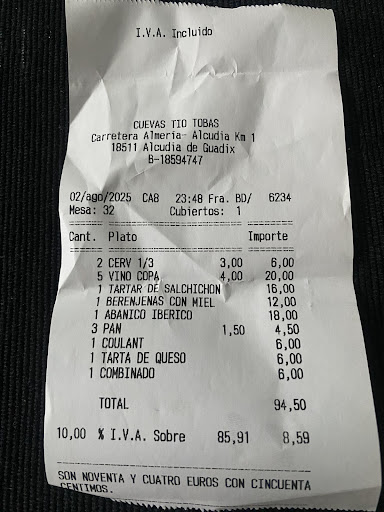 Read moreEmpiezo por la comida, la comida estaba muy rica , pedimos tataki de atún (muy top),huevos rotos con secreto que sinceramente no nos gustaron porque la cantidad de grasa que tenía el secreto parecía tocino, el carpaccio de alcachofas estaba bueno pero para valer lo que valía…Al llegar nos trajeron una tostadita de bacalao que estaba rica (gratis) pero luego te traen media rebanada de pan ( sin tostar, ni tomate,ni ajo) sin preguntar si quieres, supones que es gratis hasta que de repente en la cuenta te cobran 2€ por MEDIA rebanada. Estaba en la mesa con mi pareja que estábamos solos en todo el meson y nos trajeron la carta directamente, supusimos que era lo único que habia al no comentarnos nada el camarero ( el servicio excelente por eso), una vez que comimos y pedimos postres, llegaron como 4 mesas y les ofreció directamente el menú. Si no nos hubiera costado 94€ no me hubiera importado que no me lo hubiera ofrecido antes. En fin, el sitio es bonito el camarero muy majo pero calidad precio me parece caro, preguntad si hay...