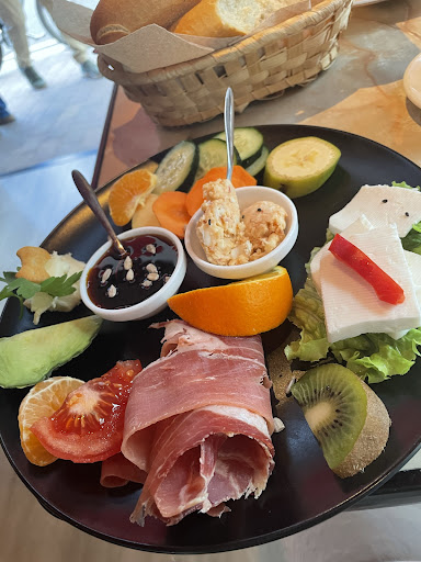 Das Café ist nett eingerichtet und war zu m Zeitpunkt meines Besuches im März 2024 fast leer. Die Karte habe ich schnell erhalten, danach musste ich jedoch mindestens eine Viertelstunde warten, bis man sich wieder an meinen Tisch bequemte - kein Problem, ich hatte mich in der Zwischenzeit gut unterhalten. Allerdings war die weibliche ältere Bedienung die ganze Zeit schlecht gelaunt, kein Charm, kein Witz, nicht mal Höflichkeit, ich habe mich sehr unwillkommen gefühlt.