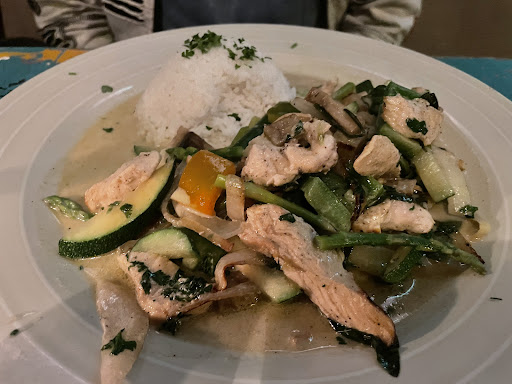 Read moreNicht wirklich gut. Das Personal ist freundlich, aber nicht sehr kompetent. Eine Tischzuordnung wäre hier sicherlich hilfreich dem ungeschulten Service ein wenig strukturiert zu arbeiten. Denn die aktuelle Mischung aus Inkompetenz und Chaos, hat zur Folge, dass man als Gast dann 40 Minuten wartet, bis man mit Mühe ein weiteres Getränk bestellen kann. Das Ambiente des Lokals ist wirklich nett. Eine Interessante Gestaltung, gute Bestuhlung, Dekoration und indirekte Beleuchtung gefallen. Die Speicherkarte ist nett gestaltet und textlich klingen die angebotenen Gerichte gut und lecker. ABER das servierte Essen passt dann leider so gar nicht zum Text aus der Speisekarte. Bei dem gebratenen Feta mit schwarzen Oliven und Paprika, handelt es sich tatsächlich um eine aufgewärmte Scheibe Fetakäse, die das Schwimmen in Olivenöl lernt. Begleitet wird diese dabei von 2 kleinen Oliven und einem Hauch von Paprikastreifen. Gebraten wurde hier also nix und die erwähnten Beilagen hätte man nicht erwähnen brauchen/sollen, weil sie höchstens als Deko dienten. Schade, denn so war das Gericht leider nicht stimmig und ganz bestimmt nicht das was die Speisekarte mir offerierte. Dass man in die Kokosmilch Suppe zahlreiche ungeschälte halbgare Ingwerstückchen fand, hat zwar dem Geschmack nicht geschadet, aber hier darf man gerne noch einmal über das Kochhandwerk nachdenken und über den Sinn dieser Aktion erst recht. Die größte Enttäuschung waren die "gebratenen" Rinderfilet Streifen auf Salat. Das Fleisch hatte die Konsistenz von Gekochtem. Von Röstaromen oder irgendeiner Raffinesse beim Würzen waren das Fleisch, genauso wie der darunter liegende Salat, ganz ganz weit entfernt. Ich würde es in der Speisekarte mit "lieblos gegarte Rinderfilet Streifen auf Salat ohne jeglichen Geschmack" titulieren. Ich habe selten etwas gegessen, das so fade schmeckte. Da wir uns nach dem Besuch ganz sicher waren, dass wir dort nicht noch einmal essen würden, kann ich hier leider nur 2...