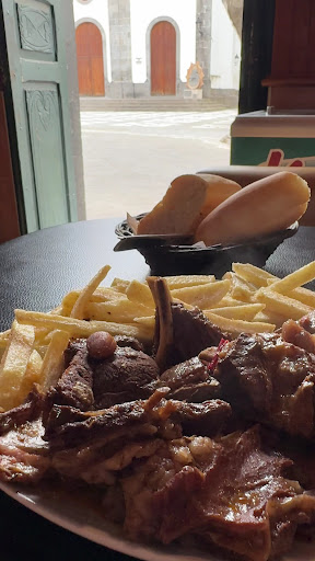 Mi madre me recomendó este sitio, ya que es un pequeño bar restaurante del pueblo ubicado en la misma plaza con el relajante sonido del viento entre los árboles y vista a la iglesia, Juan que es el cocinero, camarero, dueño y administrador del Bar super amable en todo momento y un experto con los fuegos, empezamos con una tortilla de albahaca y gambas, seguido de una carne de cabra al punto con una salsa deliciosa, por supuesto papas cortadas a mano naturales, un atún que insistió en que probáramos y nada más acertado el mejor atún adobado al mojo que he comido, jugoso y delicioso, no se te queda pastoso y seco en la boca como ocurre en la mayoría de los restaurantes, para terminar un San Marcos muy jugoso, si pudiera le daría no 5 sino...